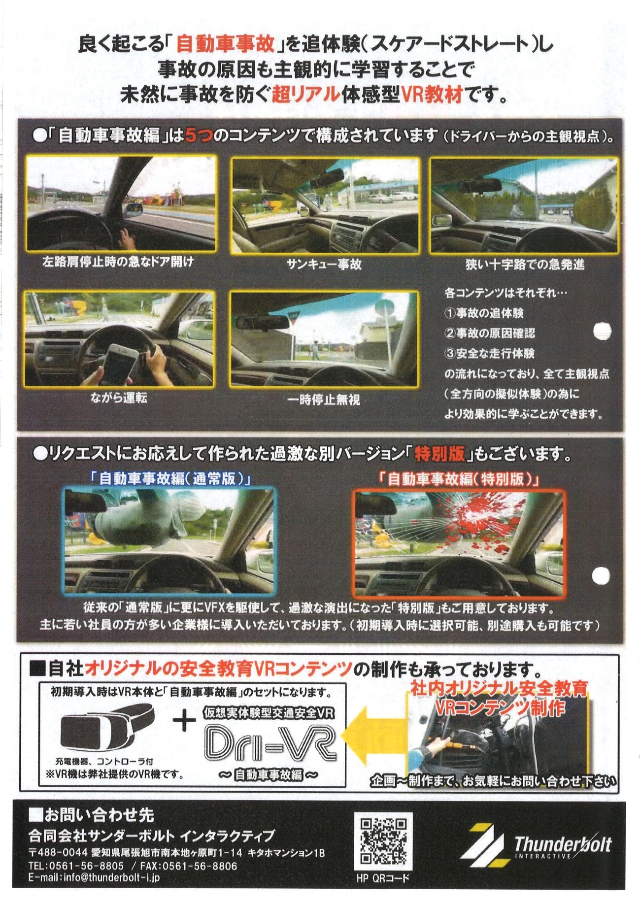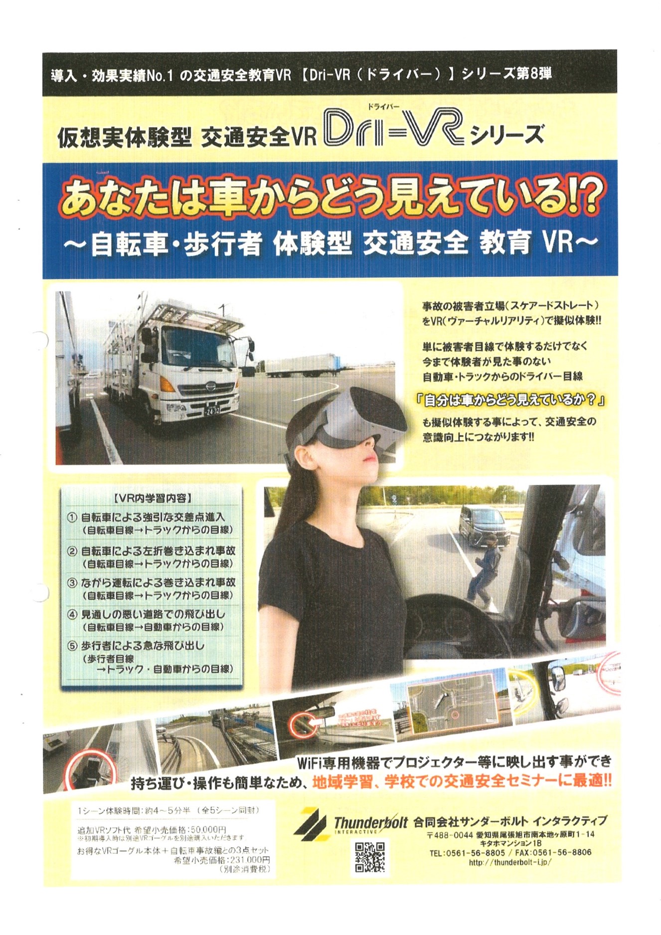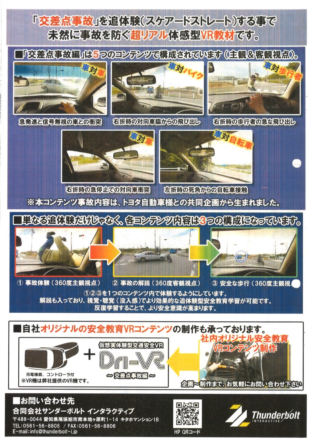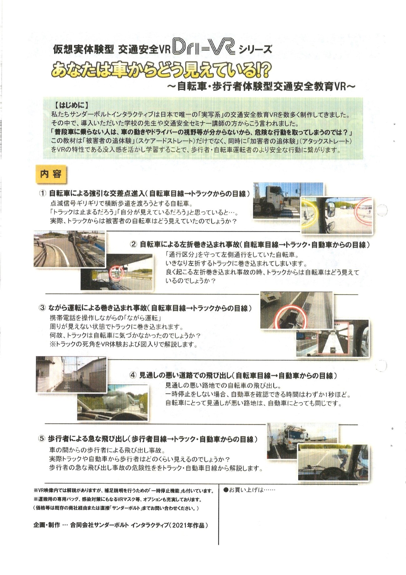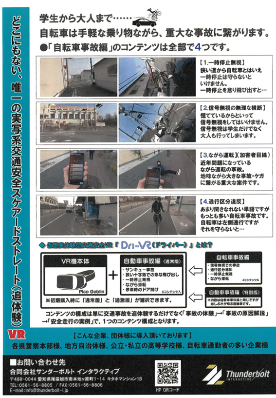 あらゆる交通事故をVR(バーチャルリアリティー)でリアルな疑似体験(追体験)をすることで、交通事故を未然に防ぐ学習をしてみませんか?